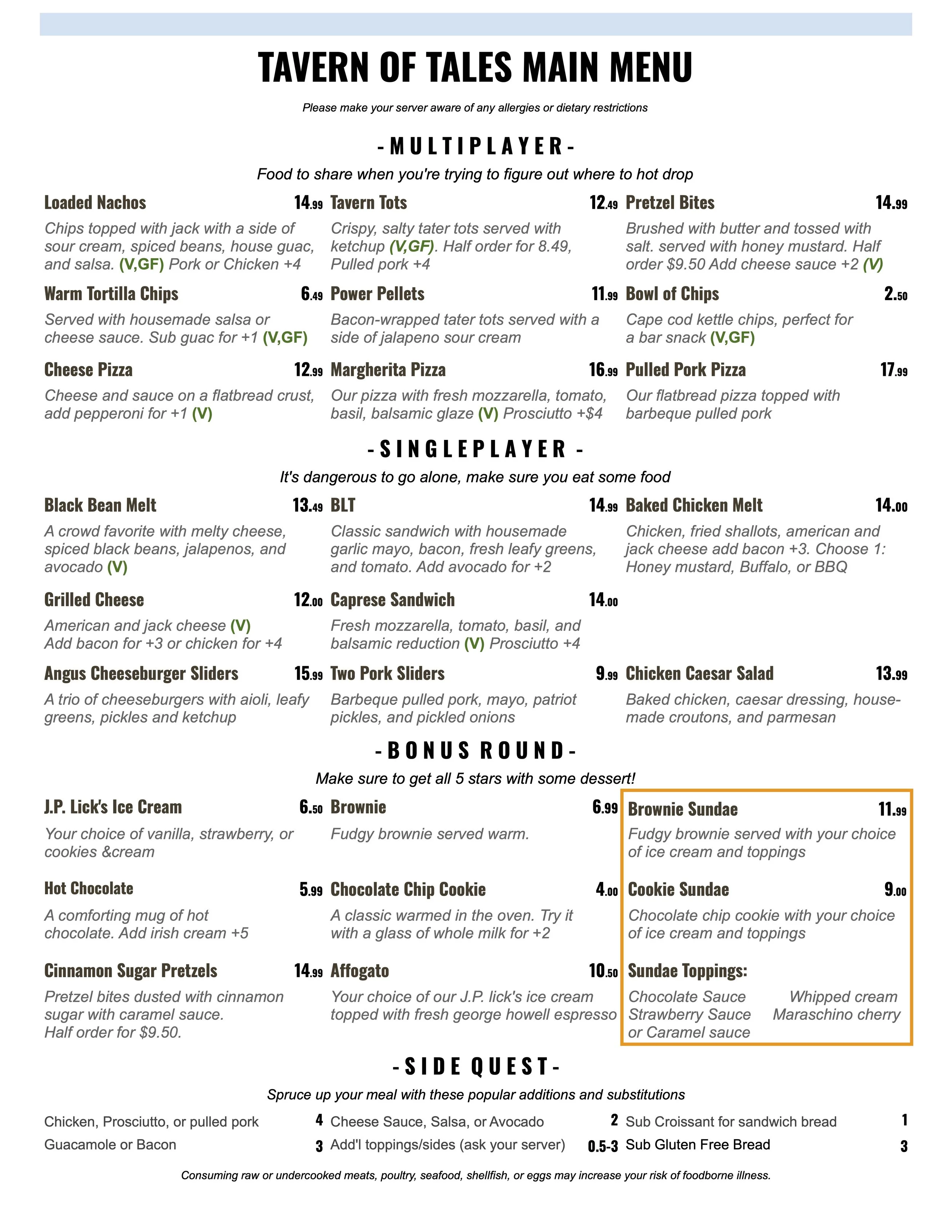 Make us aware of allergies/restrictions